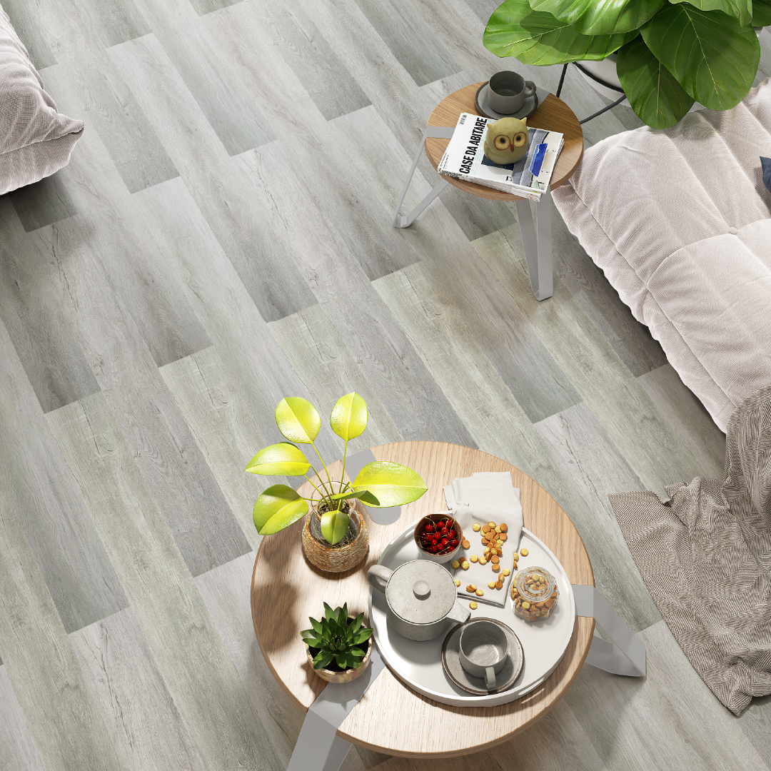 Our square-edged LUMINOUS Collection has a 12mm wear-layer with high-performing IXPE padding which offers barrier protection and sound-reducing protection. Using the latest in foam technology, the IXPE padding is 100% waterproof and impervious to mildew, mold, rot,and bacteria. At 4.5mm total thickness with a plank size of 7×48 inches and floating angle-angle click system, Luminous specification makes installation effortless, allowing contractors, builders and even homeowner a cost-effective and hassle-free flooring option that still comes with all the waterproof, scratch-resistant, and life-proofed benefits of traditional LVP.