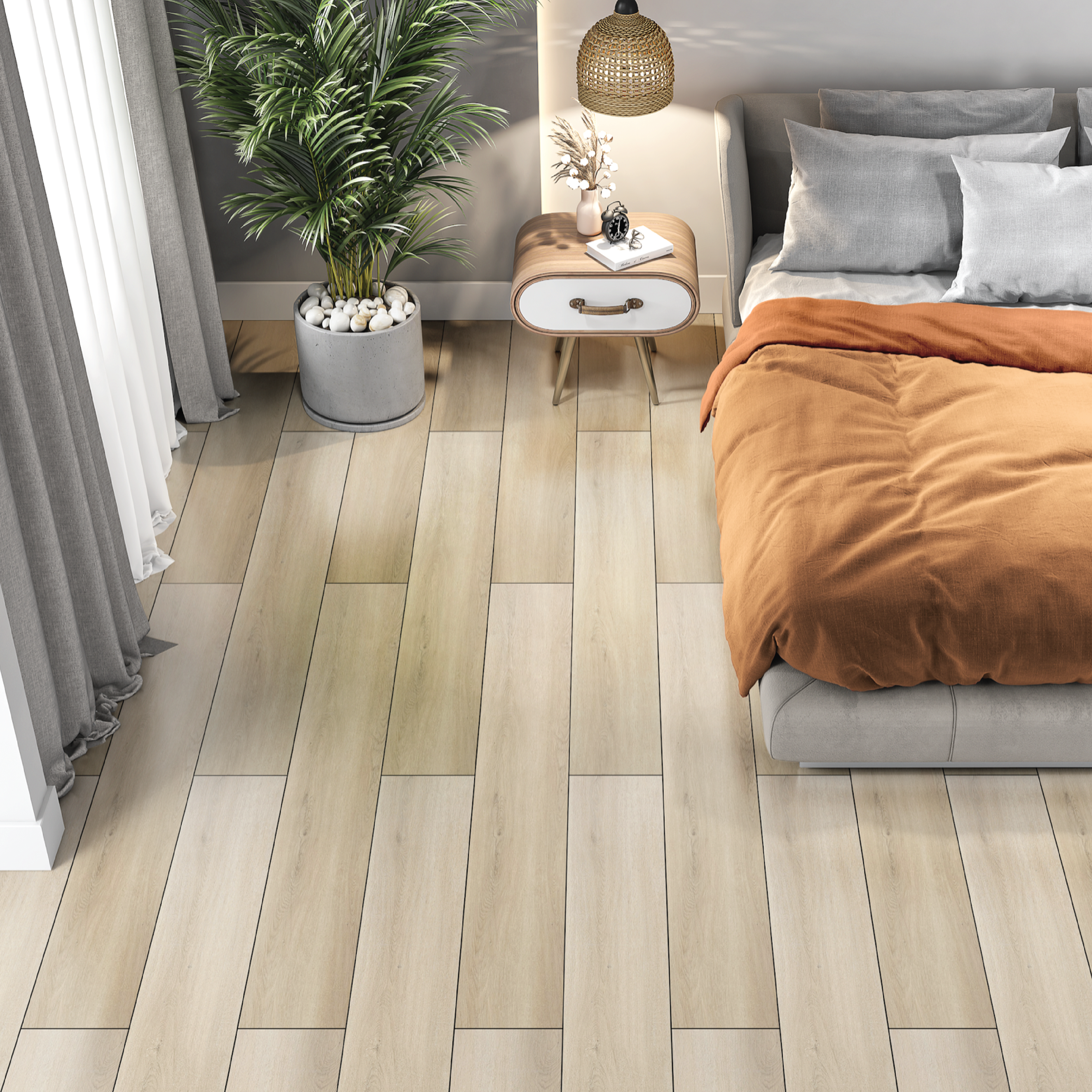 PLANET is one of our 2 painted-bevel collections with a 20mil wear-layer that provides the highest level of protection against fire, moisture and scratches to ensure that your flooring is life-proofed to keep pace with modern luxurious living. What makes PLANET stand apart from our previous collections is its luxurious 9×60” plank size, thicker 1.5mm padding for smoother acoustic and sound protection, and deep-embossing technology. The deep-embossed surface provides PLANET with a more lifelike feeling reminiscent of real wood texture. Durable and 100% waterproof as the rest of our LVP collections, the PLANET collection is Anti-Slip, Moisture Proof, and Lifeproofed — the perfect answer to bringing the ease and convenience of modern luxurious living to limitless design possibilities.