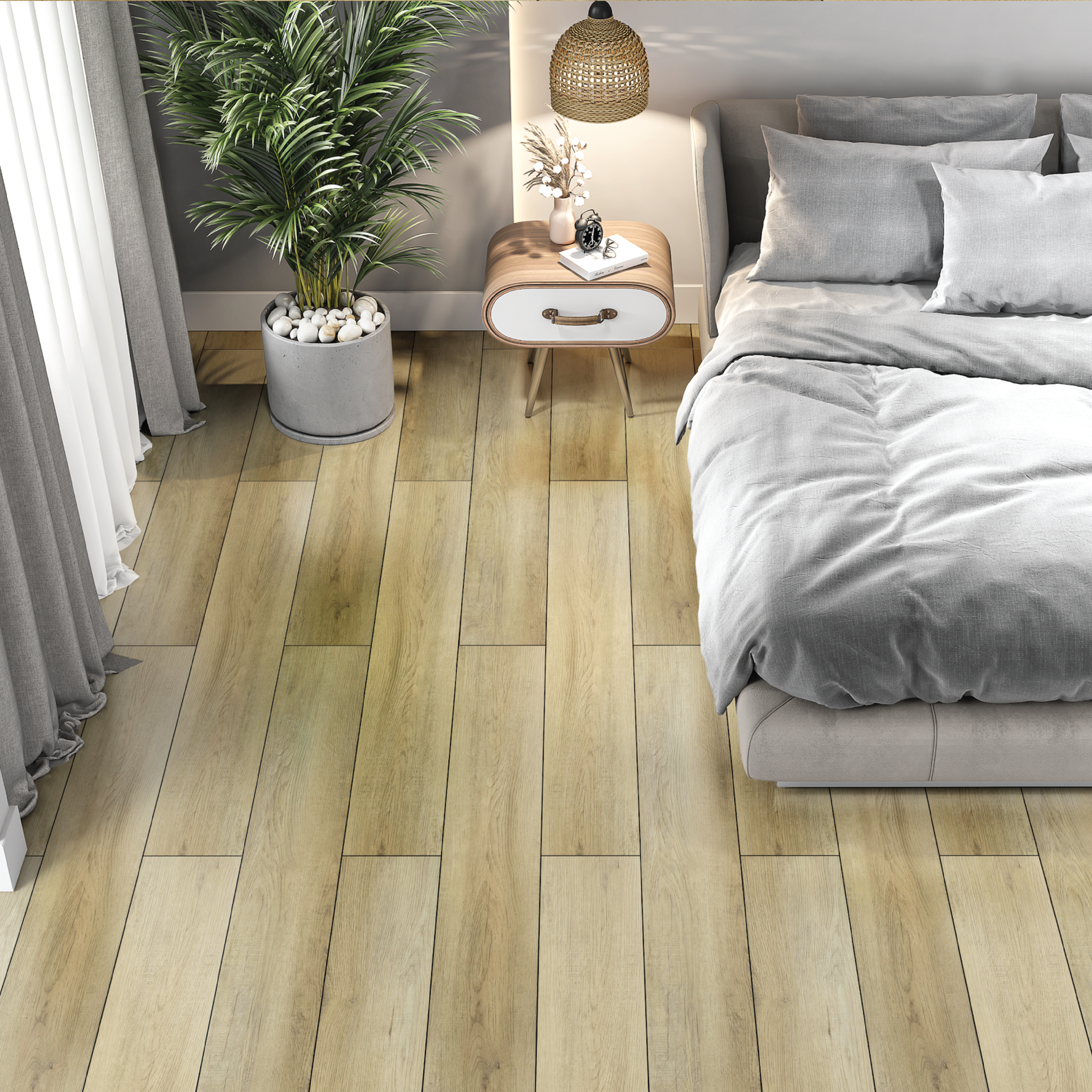 ROMAN is our most premium offering for timeless, high-class living. With its thick 6.0mm produced from the highest-quality virgin raw materials, 20 mil wear layer and 2mm IXPE padding which provides not only the highest anti-static rating and sound/thermal insulation but also the lushest floor cushioning and acoustics – all without compromising its sturdy and reliable Unilin angle-angle click installation – ROMAN sets the standard for what floating LVP can be. The longer 9×60” plank sizes and deep embossed surfaces also give every design in this collection a more realistic wood feel that opens up any space it’s featured in, making them feel timeless.